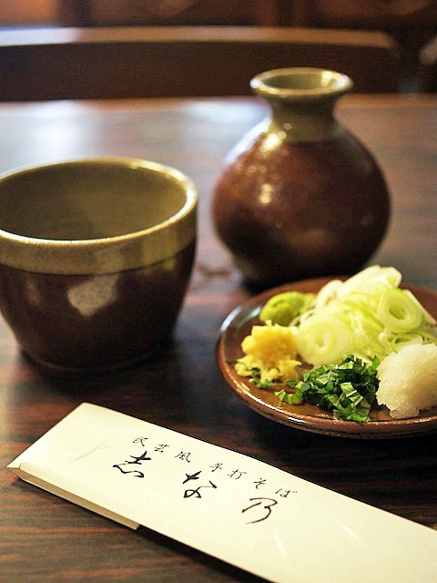 合盛りえらんでお願いすると、まずは薬味とそば猪口がくる。
