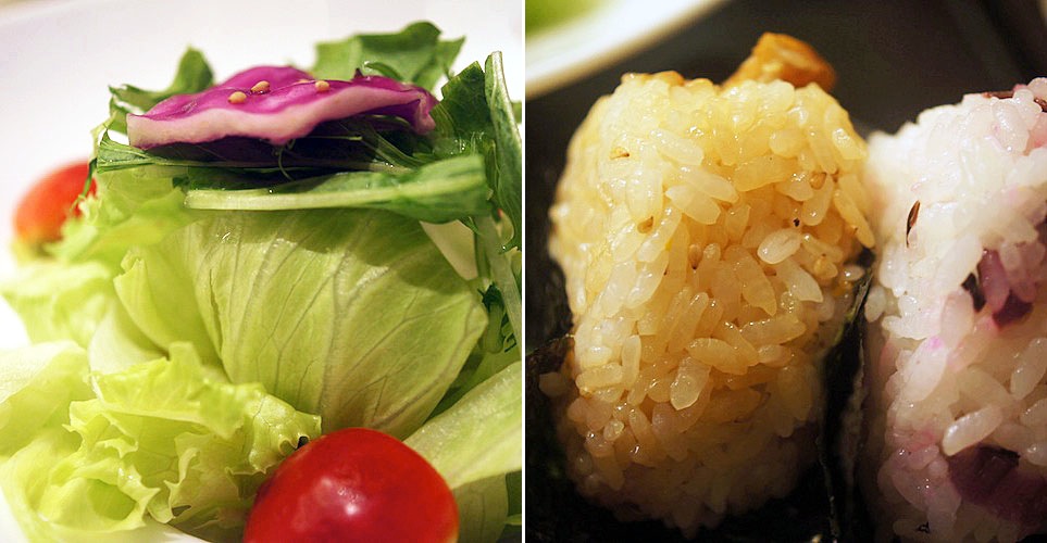 それからおむすび…、穴子を混ぜたおむすびとカリカリ梅を混ぜたモノ。