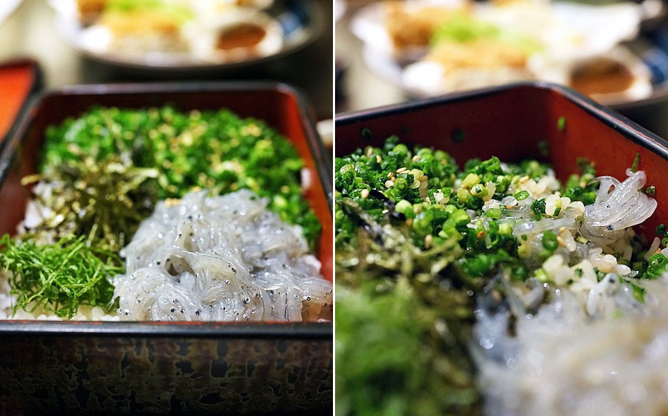 音戸の瀬戸から運ばれたという、生しらすをタップリのっけたしらすご飯。