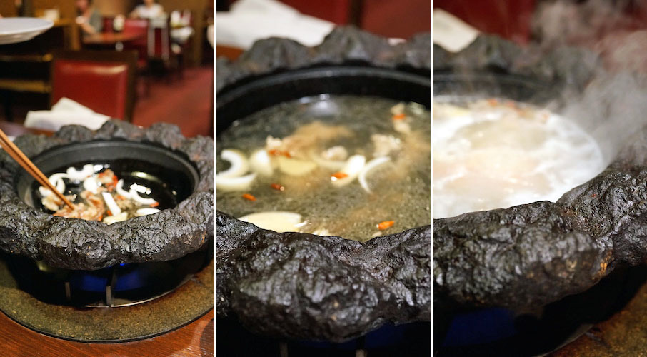 「石器料理」と店名についているのは石をくりぬいて作ったまるで石器のような器で料理を作ってくれるから。