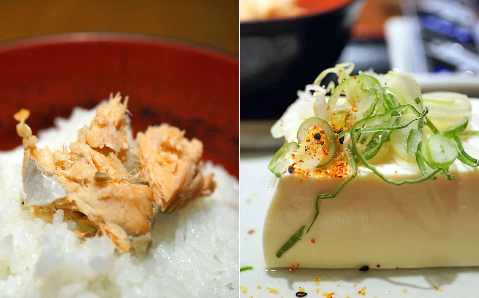 奴に七味。醤油をかけずにそのまま食べると、豆腐の味がキリッとしまる。甘みさえも感じるおいしさ。