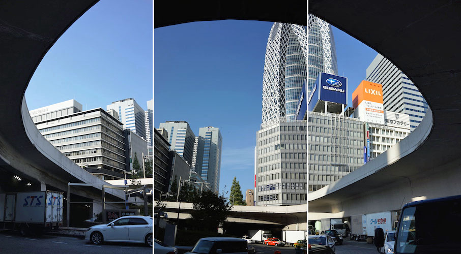 仕事に向かう途中に新宿駅で途中下車。西口ロータリーの真ん中に立ち、空を見上げる。