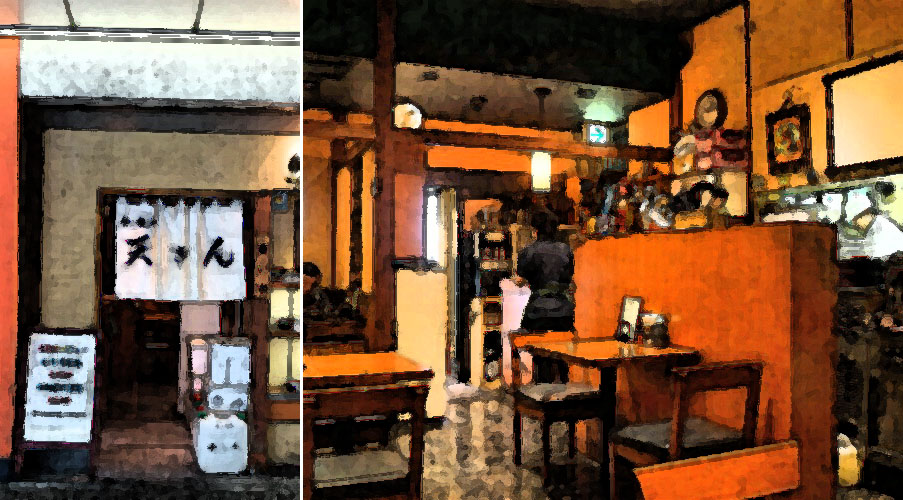 新宿西口の駅改札口と超高層ビル街つなぐ通路に面してあるお店…、名前の通りその本業は天ぷら屋さんで、けれど朝は気軽な和食の定食がある。