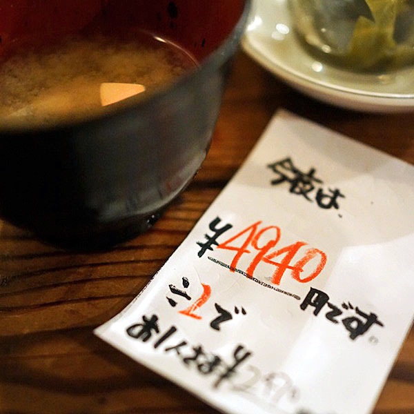 2人で言って、タップリ飲んで、おでん8串、他にも料理をあれこれたのみお勘定がこの安さ。