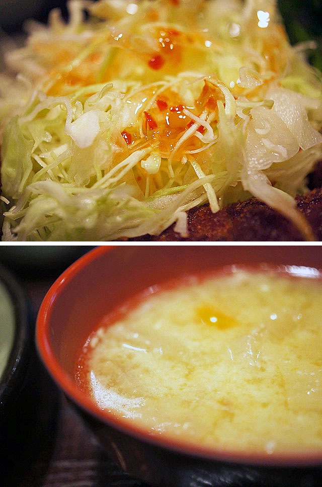 ソースと同じくちょっとゆるめにとかれているので、付けて食べるというよりも、ソースにとかして漬けて食べるのが様になる。