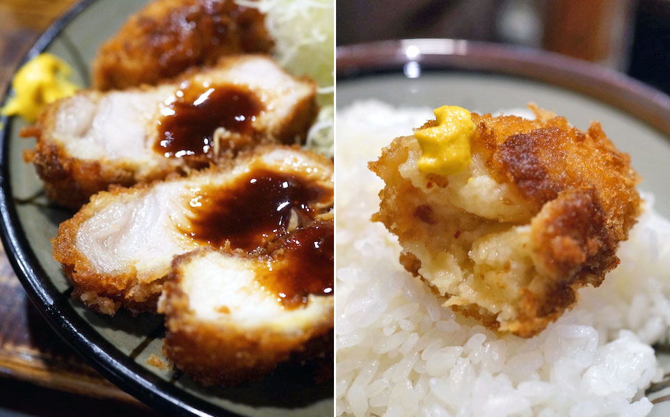 チキンカツとコロッケの盛り合わせを選んで食べる。