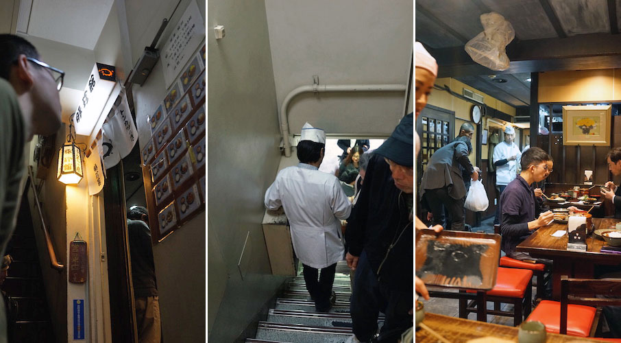 繁盛店でランチ時にはお店に続く階段に、ズラッと街の行列できる。