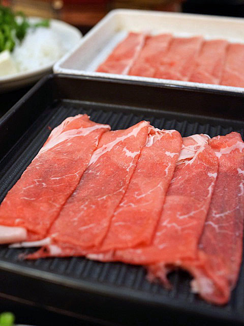 今日の気分はコッテリ系の脂を味わうタイプの肉で、熱が入るとちりちり脂が縮れてフリルのようになってく…、味わい豊かで特にすき焼き用の牛肉のおいしいコト。
