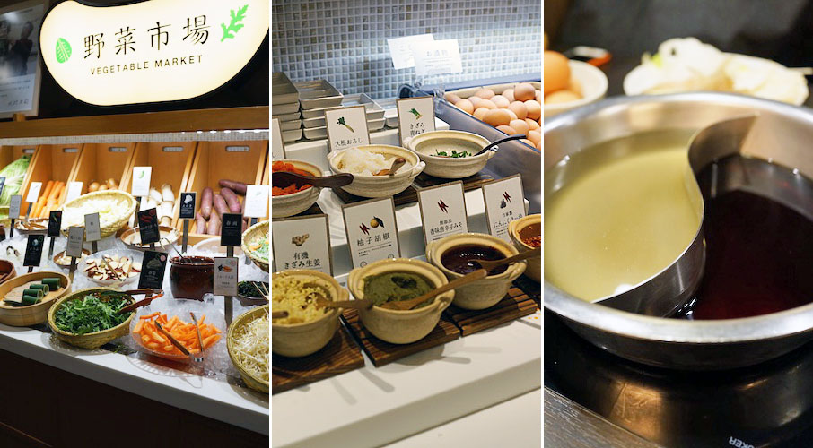 サラダバーのようなコーナーがあって、そこで鍋野菜を自由に選べるというのが売り物のココ。