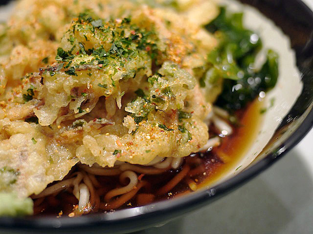 新和ってお店で、冷たい天ぷらそばがお気に入り。