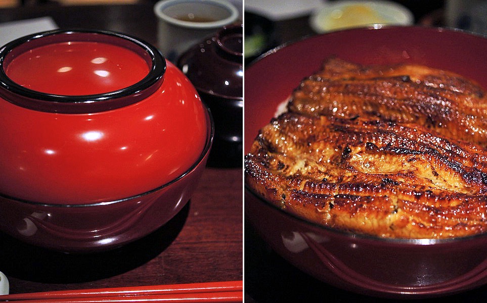 漆のお椀にやってくるのがココのうな丼の特徴。