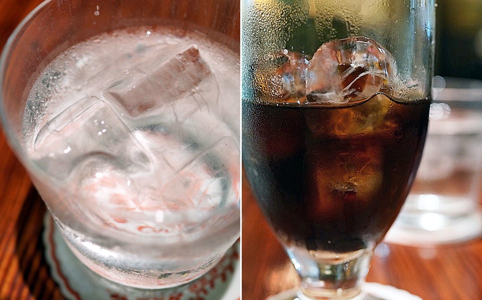氷のタップリ入ったお水…、アイスコーヒーの中の氷も大きくカリンとグラスに当たって涼しい音を奏でてくれる、さぁ、帰ろ。