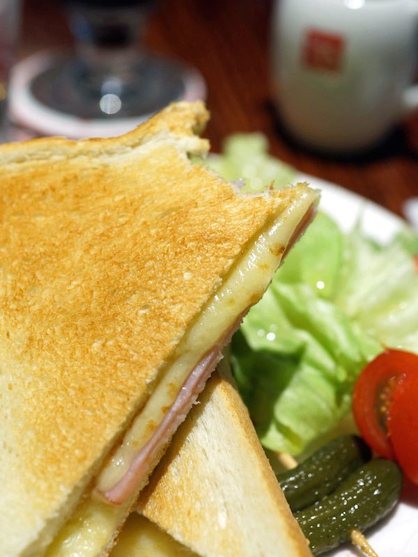 二口ほどのサイズなんだけど、お茶のお供にはほどよくて大抵それをたのむのだけど今日ははじめてクロックムッシュ。
