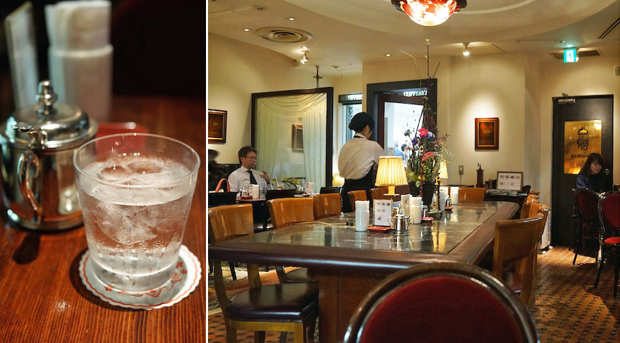 こういうグラスで出てくると、アイスコーヒーもなんだかちょっと上等に思えてしまう。小指がたたぬように(笑)と注意をしながら持ち上げて、コクリと飲んでお腹の準備をととのえる。