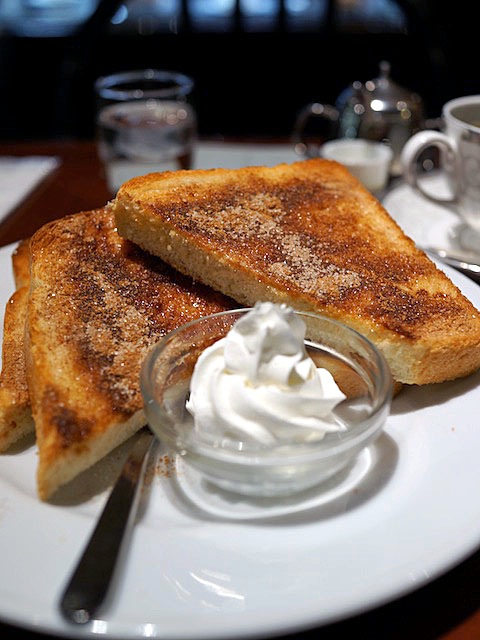 先日、BLTを食べてぼんやりした「楡」ってお店…、新宿西口地下街にあるほどよきサイズの喫茶店にて、そのとき隣の人が食べてるシナモントーストがどうにもこうにも気になって。