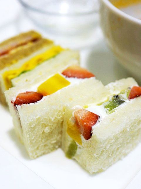 実は長らく、フルーツサンドイッチの存在意義を知らずにいたけど、最近、開眼…、フックラとした食パンと、ポッテリとしたクリーム、それからフルーツのこの組み合わせのステキなコト。