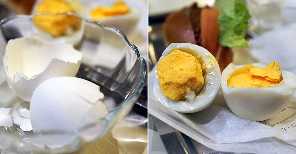 パクリと食べるとプチュリと白身がはじけて中から、ムッチリとした黄身がでてきて口の中にてネットリおいしく溶けていく。