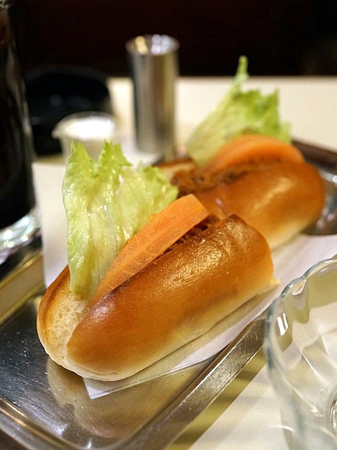 ドッグロールをこんがりやいて、中にミートソースをポッテリのせる。
