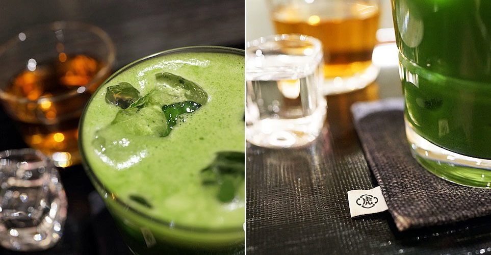 大きくかち割った氷をギッシリグラスに入れて、そこに抹茶を注いで冷やす。