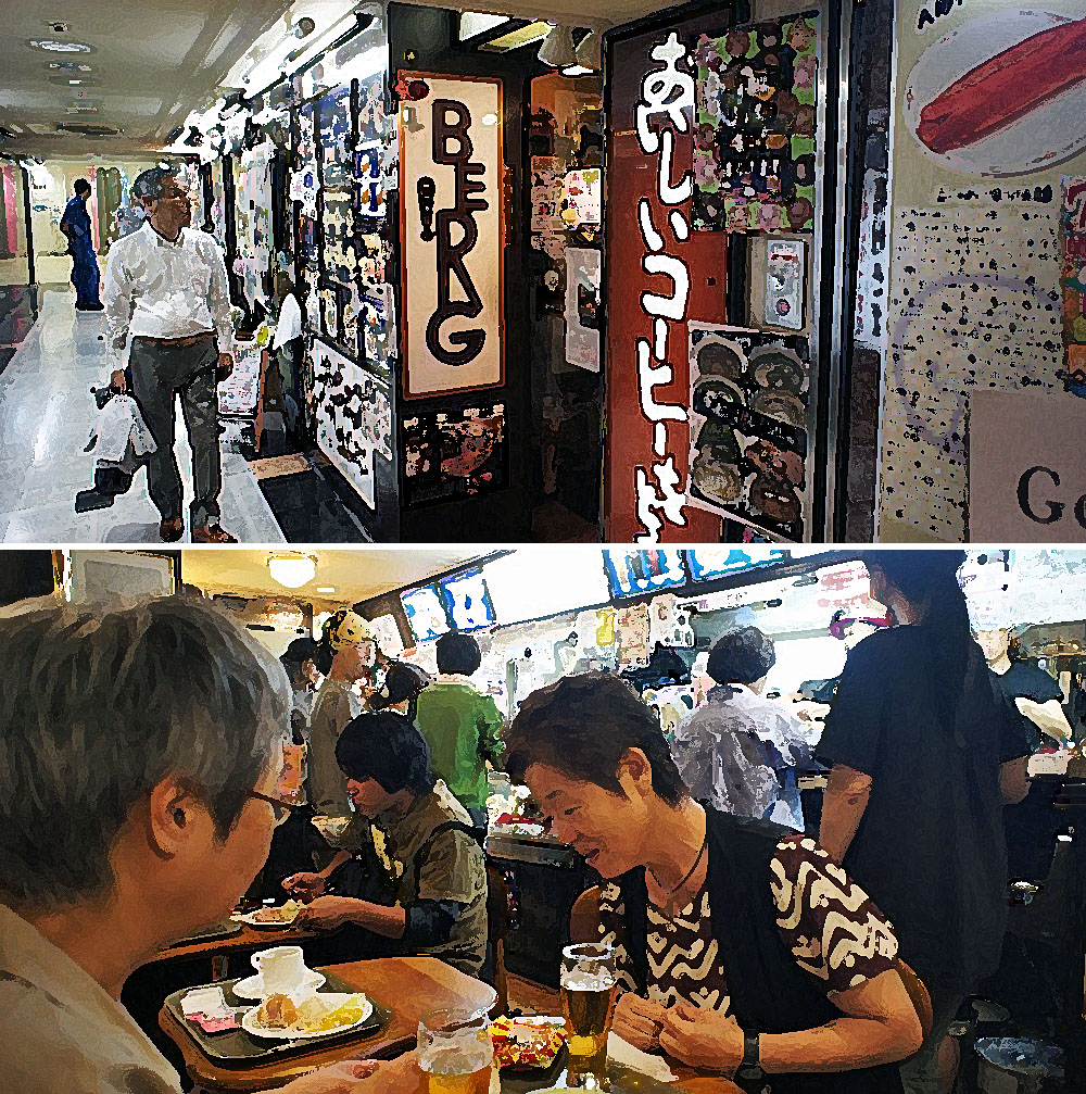新宿という街の性格もあるのでしょうけど、この店では朝からビールを飲む人たちがこれから仕事に向かって朝食セットをコーヒーと共にたのしむ人と一緒にいておかしくない。