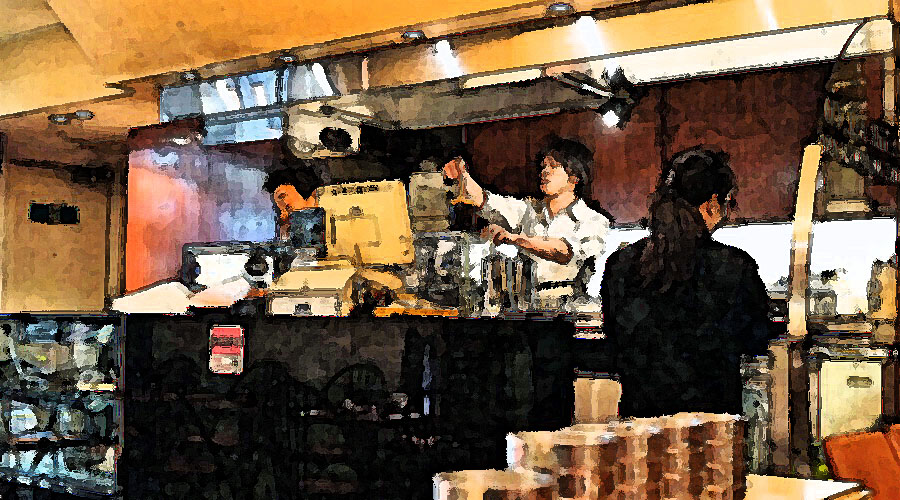 カウンターの中にサイフォンが幾つかあってそこでユックリ時間をかけて淹れられる。