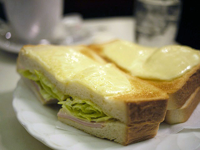 何種類かあるモーニングセットの中からチーズトーストのサンドイッチを選んでもらう。