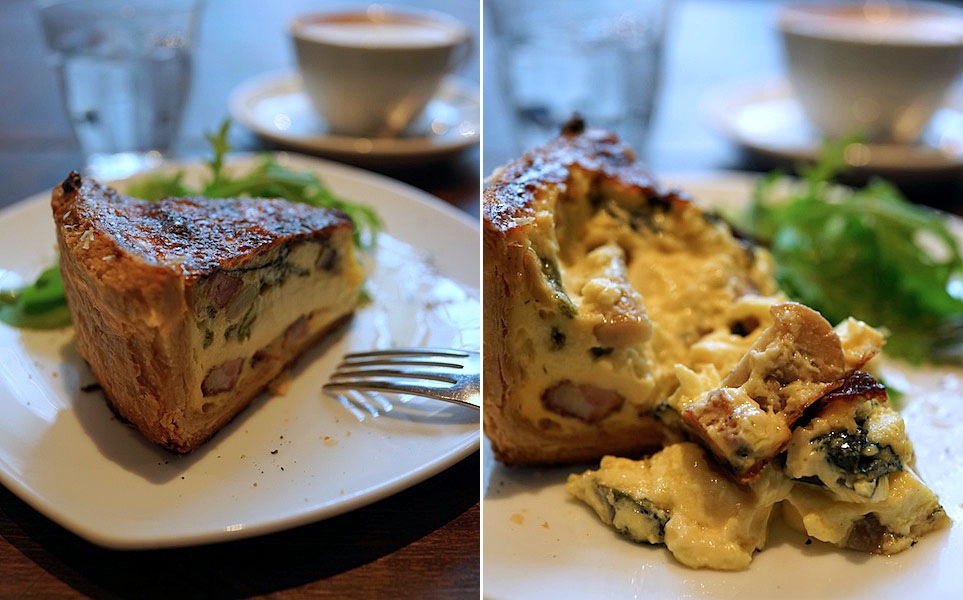 分厚いベーコン、ほうれん草にマッシュルームにポロネギとそれぞれ旨味をタップリもった素材をひとつにまとめ上げるのが玉子の力。