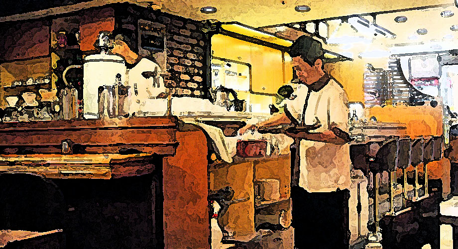 そもそも注文を厨房の中に通すとき、「アイスコーヒー」っていうとそれは砂糖入り、甘くないのを「アイスコーヒー砂糖抜き」っていうのがなんだかオモシロイ。