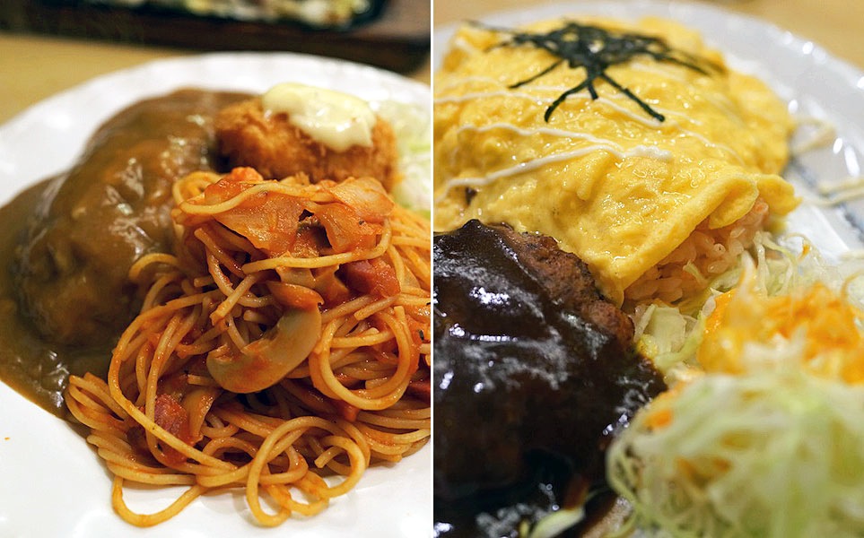 ひとつはカレーライスにナポリタン、クリームコロッケがひとつお皿にひしめいている。