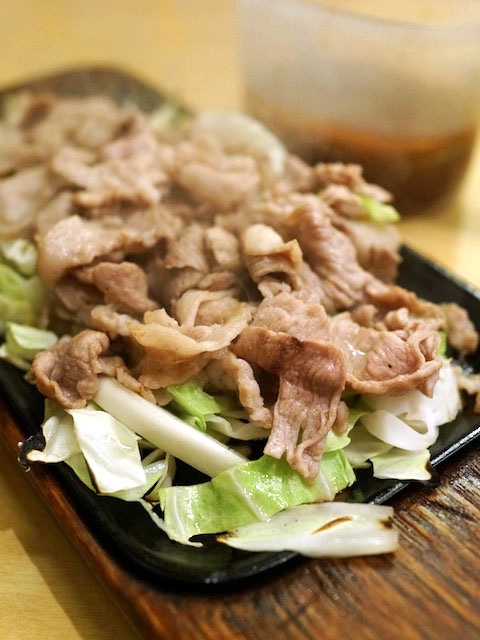 肉そのものにすでに下味はついているけど、そこにここのしょうが風味のタレをたっぷりかけて味わう。