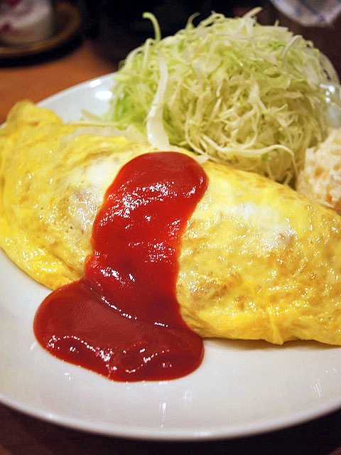 玉子の上にタランとかかった、ケチャップと一緒に食べてはじめて普通のオムライスのような味がするのがステキなところ。