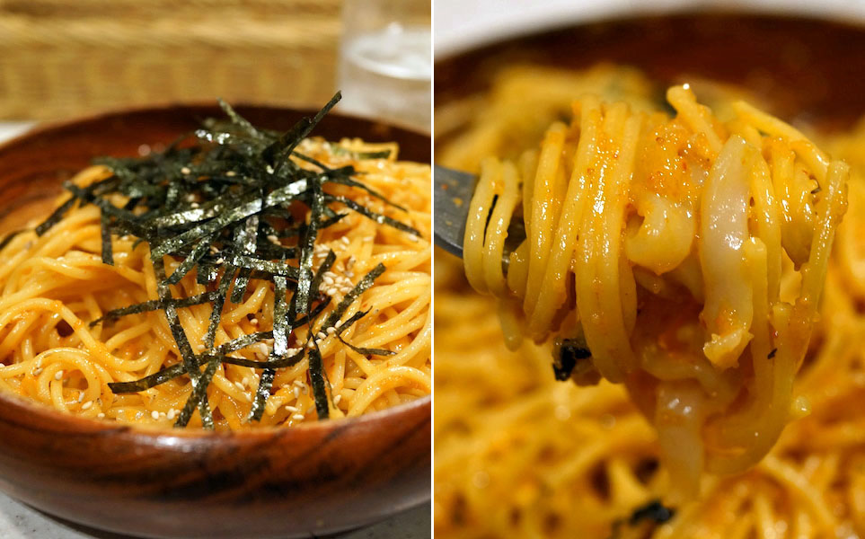 さてやってきました…、タラコウニイカカラクチパスタ。