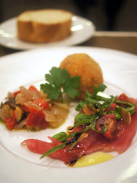 ぬめっとした所をオリーヴと塩でカルパッツィオも