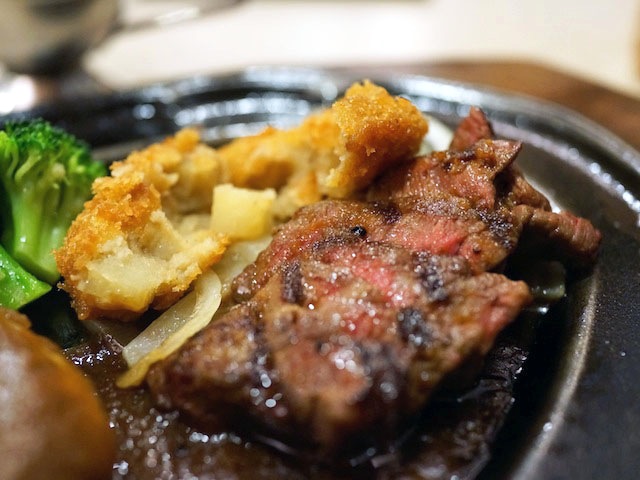 鉄板の上でしばらくジュウジュウ焼かれていながら、食べようと思ったときに赤みが残った状態であるというのにウットリします。