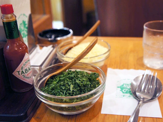パセリがパスタにかろうじて、残った水気を吸いとってもっさり感に拍車をかける。