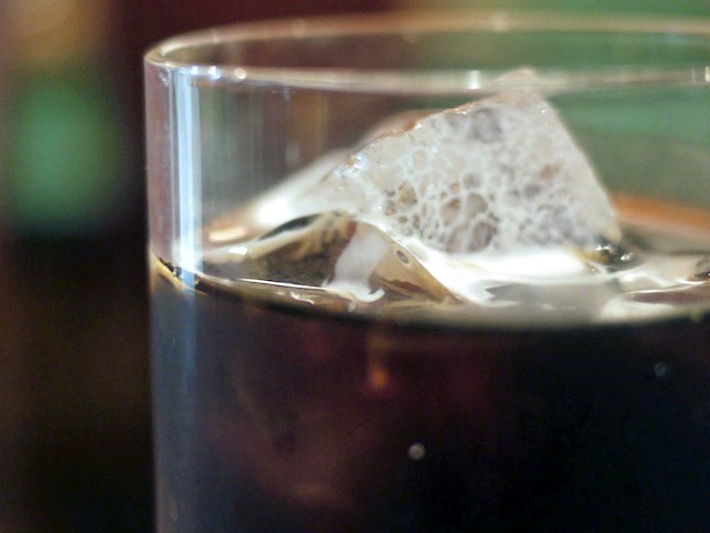 氷の上にしばらく貼り付き、ユックリ、グラスのコーヒーの中に滲み出してく。