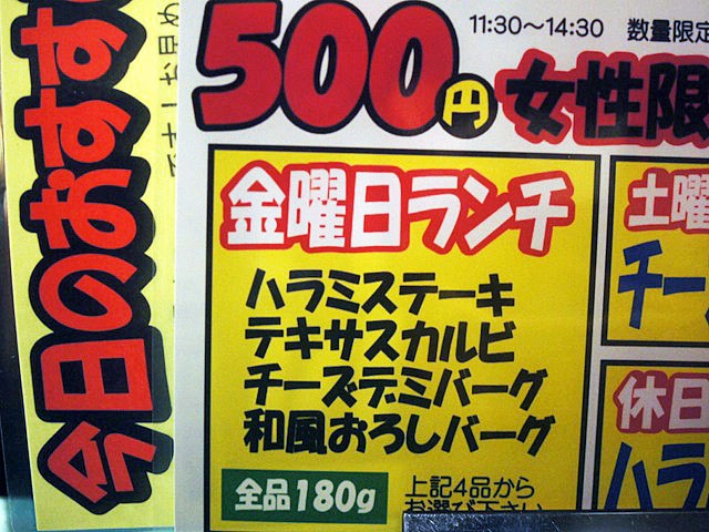 今日は「29の日」でもあるまいし、どうしたこと…、って思っていたらなんとココ、毎週金曜日は500円で女性に限りステーキランチが食べられるという。