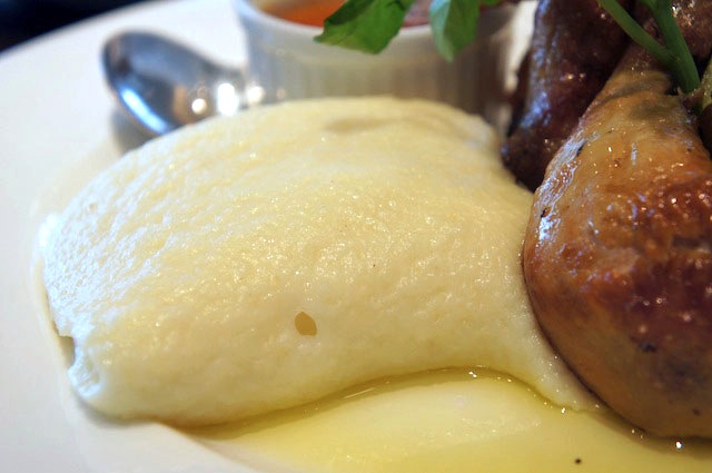 マッシュポテトにはかなりの量のニンニクと、ホワイトペパーが使われていて、香り高くてスパイシー。