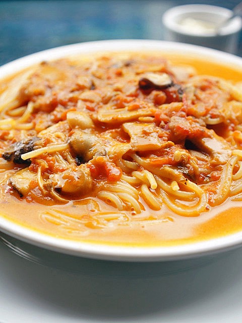 ちょっと変わったスパゲティーを作ってて、それが結構、クセになる。