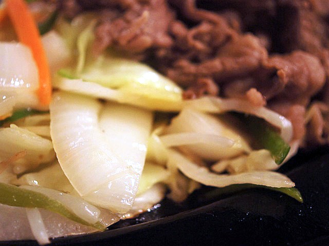 しかもカメラを鉄板の反対側に向けて撮ったら、肉の料理じゃなくてまるで野菜の料理に見えるのが、なんともステキ。