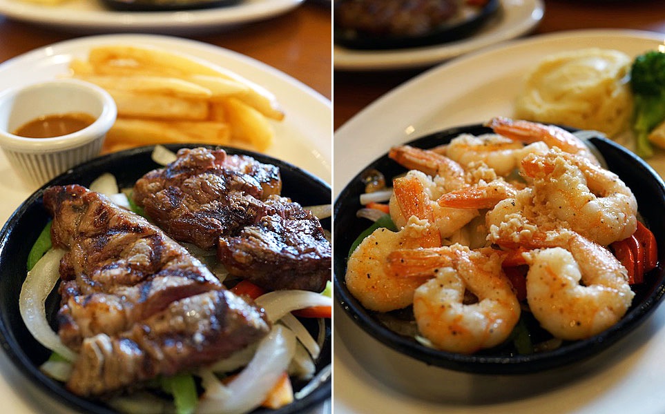 カットステーキと、ガーリックシュリンプ…、分けあいやすい料理がいいな、と。