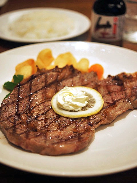 肉のうま味は若干弱い…、USビーフでありますゆえ、コクにかけるところをバターで風味を足して味わう食べ方、昔ながらの知恵に感心、いたします。