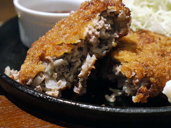 ハンバーグよりしっとりしてて、衣のパン粉の乾いた食感と好対照でおもしろい。