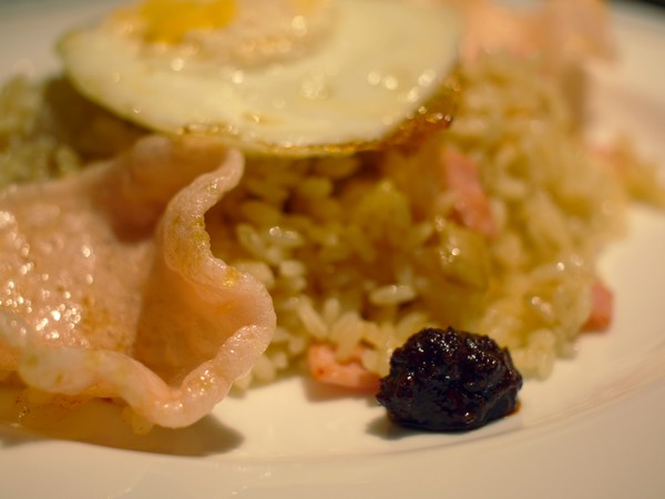 サイドに揚げたばかりのエビせんべいを乗っけたところでアジア風になる。