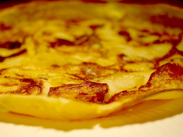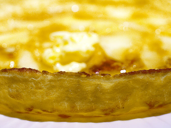 フライパンの形のままに薄ぅく焼きあがったパンケーキ。