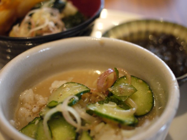 宮崎名物の冷汁に、冷たいうどんにそれから、もずく。