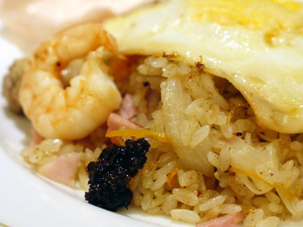 エビをタップリ入れて、ジャジャッと炒めてこれだけだったらただのピラフ。