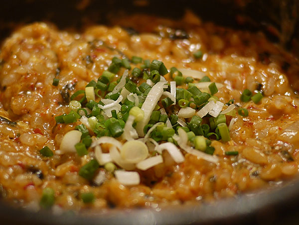 玉子を入れて、韓国海苔を刻んでたして最後にネギで、これまたハフハフ。