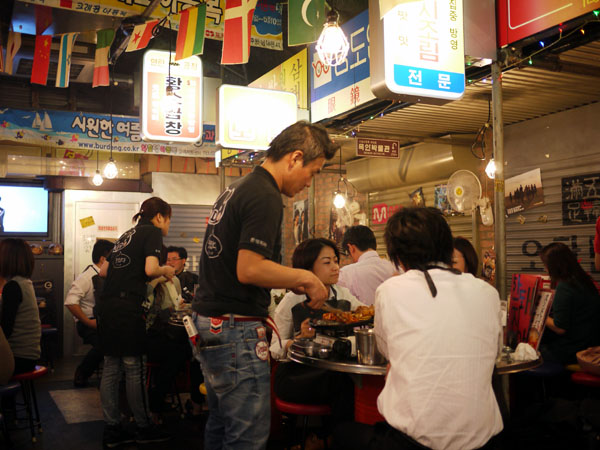 厨房脇のとてもにぎやかなテーブルもらい、お店の人の元気なハングルマルをタップリ体にしみ込ませ、やっぱりここはカジュアルでいい。
