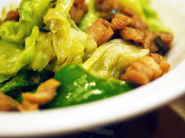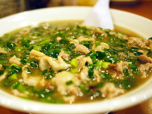 どんなのだろう?って思うボクらの目の前にやってきたのは、細かく刻んだ韮と豚肉がラードでザックリ、炒められそれにトロミを付けたものがタップリ浮かんでいるおそば。